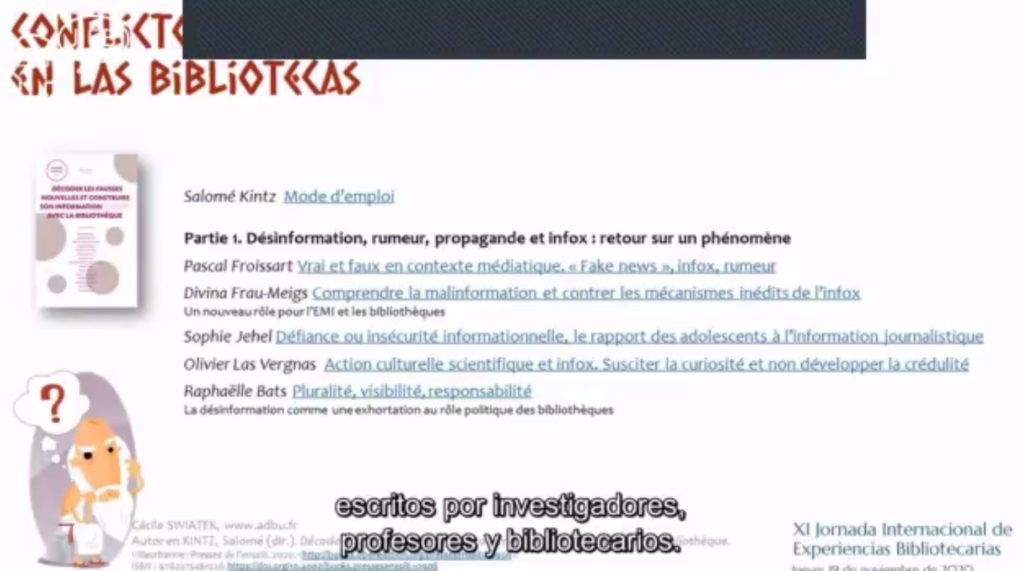 Otra dificultad importante que han encontrado las bibliotecas en el ejercicio de su función como garantes del acceso a información, es la proliferación de noticias falsas o fake news. Las dos siguientes ponencias trataron este tema desde dos puntos de vista diferentes, el de la biblioteca universitaria y de investigación y el de la biblioteca pública.